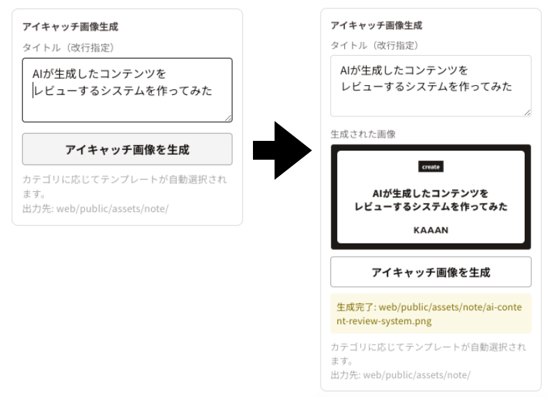 レビューシステムで「アイキャッチ生成」ボタンを押すだけ。